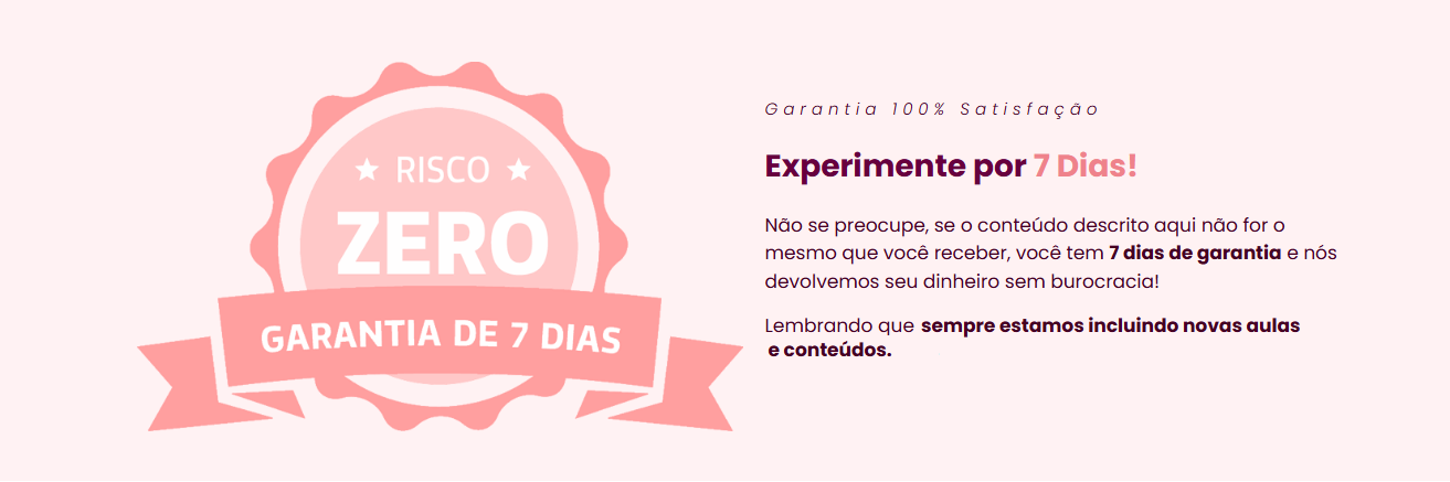 Você terá acesso garantido ao curso por 1 ano completo diretamente pela plataforma, com todo suporte e atualizações inclusos.